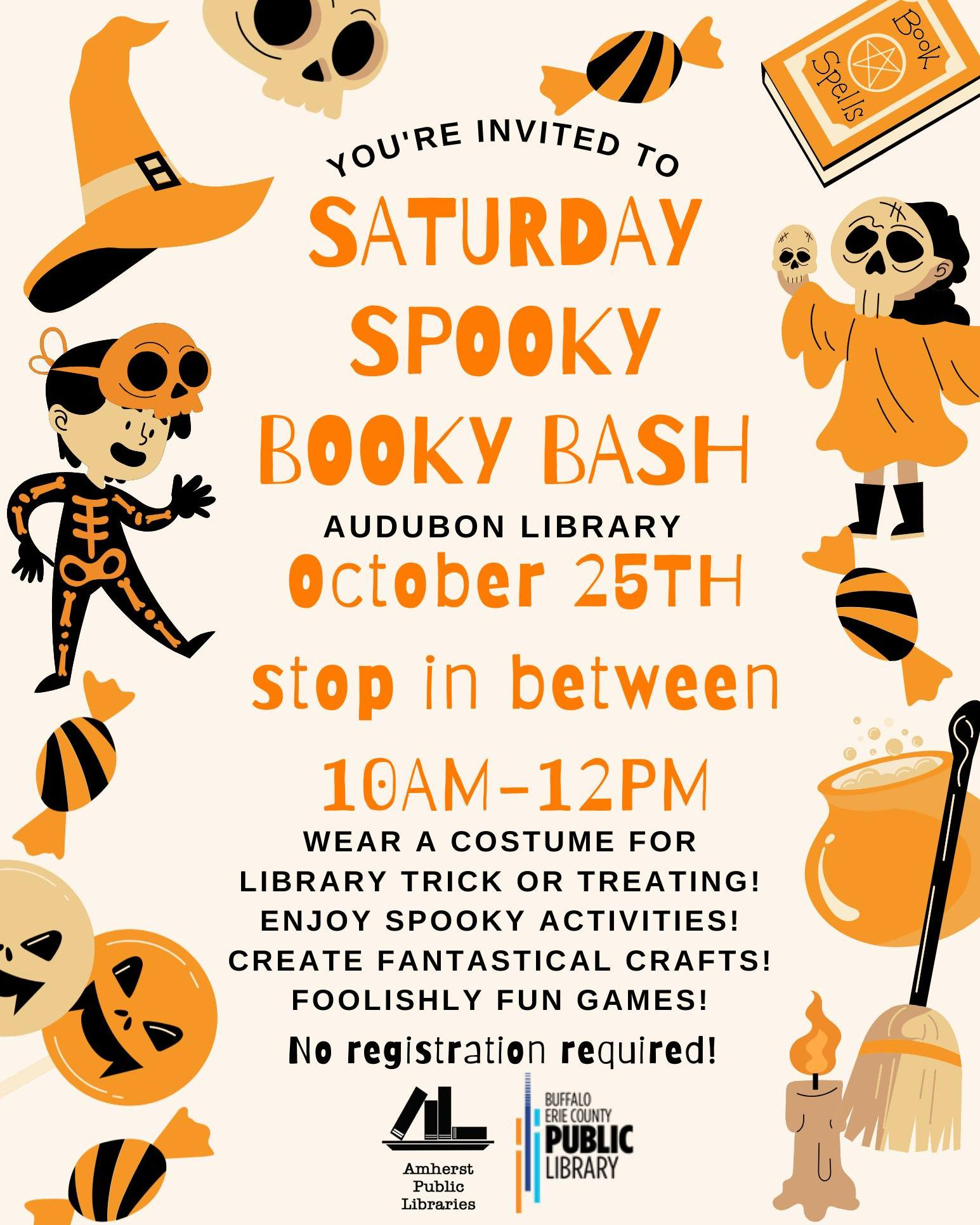 The Town of Amherst has four public libraries: Amherst Main Branch (350 JJ Audubon Parkway); Clearfield Branch (770 Hopkins Road); Eggertsville-Snyder Branch (4622 Main Street); and Williamsville Branch (5571 Main Street). Events and announcements are posted on Facebook at www.facebook.com/AmherstPublicLibrary or online at the link below. Get ready for Halloween Events! Enjoy all that the library has to offer!